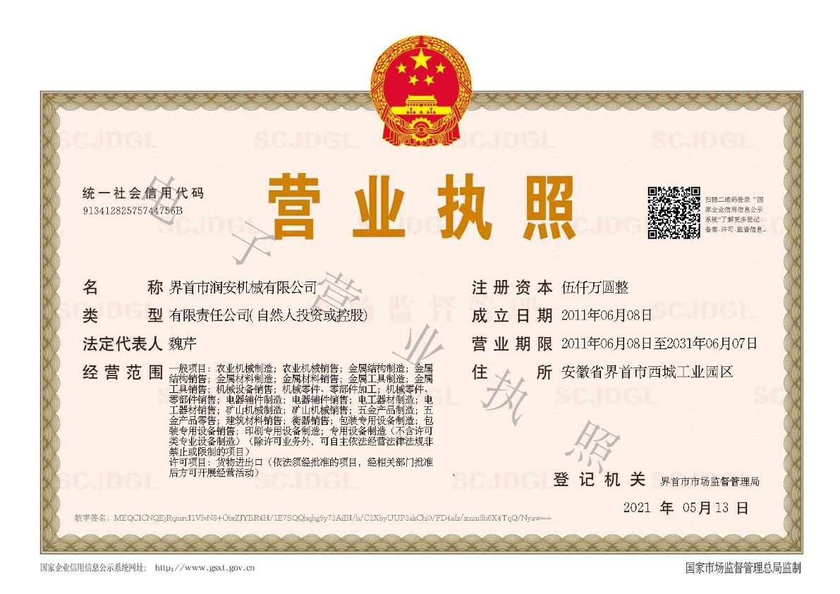 界首市潤安機械有限公司 版權所有 免責聲明 皖ICP備2022000313號-1 技術支持:網新科技(www.ibw.cn) 營業執照